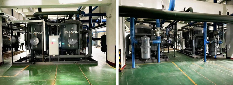 了解到项目信息后,杭州山立销售员第一时间赶到现场了解客户的需求和实际工况,客户原计划新增微热吸干机,经过销售员多次对现场工况实地考察分析与沟通,从设备本身的性能、技术改造以及操作措施等进行了多方面考量,给客户配置了1台60立方的零气耗鼓风热再生吸附式干燥机、3台200立方的零气耗压缩热再生吸附式干燥机和1台150立方的组合式低露点压缩空气干燥机,通过多维度的节能减排措施,为客户极大地降低了设备运行能耗,节约了生产成本。